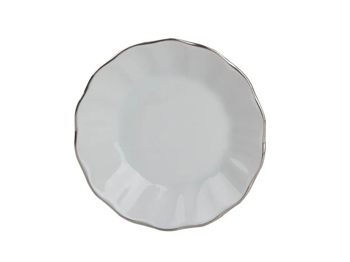 Kenarlardaki ince platin yaldız detayı, tabağa klasik ve asil bir görünüm kazandırırken porselenin doğal beyazlığıyla mükemmel bir kontrast oluşturur. Günlük çay saatlerinden özel davet sofralarına kadar her ortamda şıklığı tamamlar.