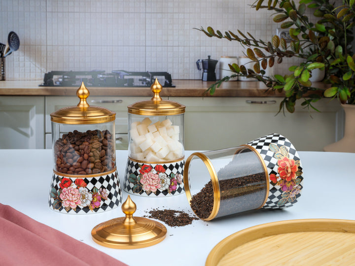 Mutfağınıza zarafet ve doğallık katan Royking Floral Baharatlık Seti, eşit boy cam kavanozları ve çiçek desenli estetik tasarımıyla hem kullanışlı hem de dekoratif bir çözümdür. Günlük hayatta en sık kullandığınız baharatları düzenli ve şık bir şekilde saklamanızı sağlar.