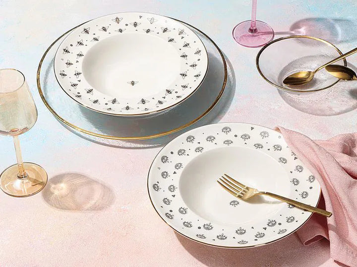Sanatsal detaylarla bezenmiş Ruby Veni ve Vidi desenlerinin buluştuğu 2 Kişilik Makarna Takımı, özel sofralarınıza estetik ve uyum katıyor. Her biri özgün desene sahip tabaklar, makarna ve benzeri sunumlar için ideal formda tasarlanmıştır.
